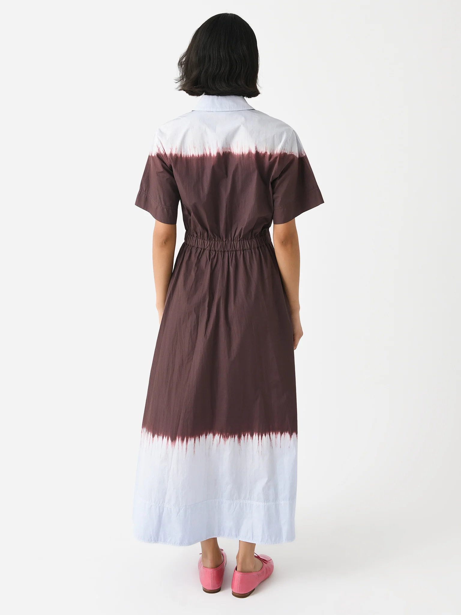 FEATURES:Spread Collar Partial Button Placket Elastic Waist Side Pockets Midi Silhouette Dip Dye Design 100% Cotton Poplin Classic Fit Model is wearing size 4 dress. Model's Measurements: Height: 5'8" | Bust: 32A | Waist: 25.5" | Hips: 35" | Dress Size: 0-2 (US)