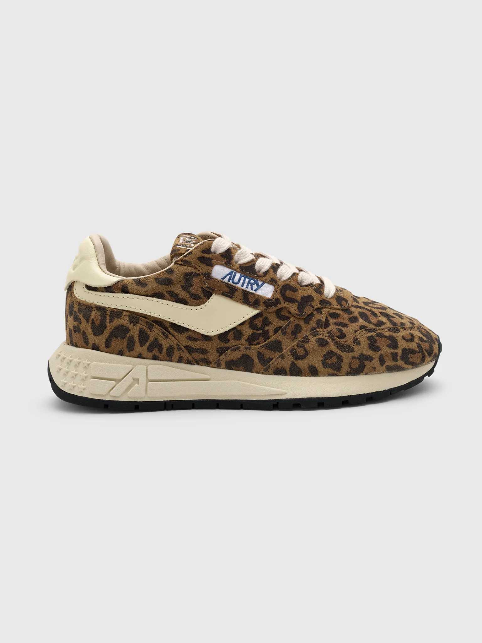 This sneaker is a bold fusion of heritage and contemporary elegance. It features a leopard print on suede leather, a sleek profile, and a creamy, contrasting sole. It's finished with discreet embossed and stitched branding at the side, tongue, and heel.