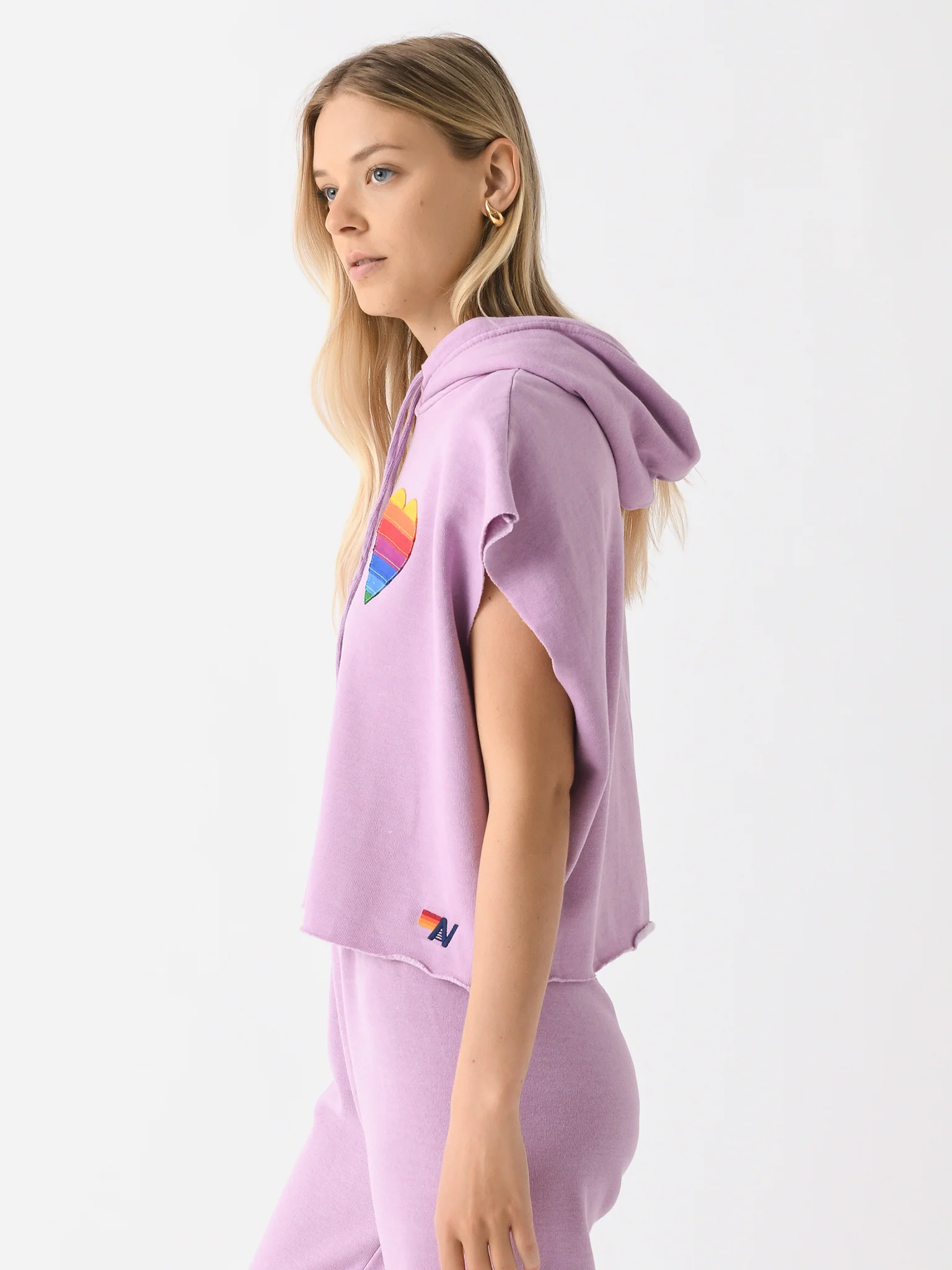Aviator Nation Women's Rainbow Heart Stitch Sleeveless Relaxed Cropped Pullover Hoodie
