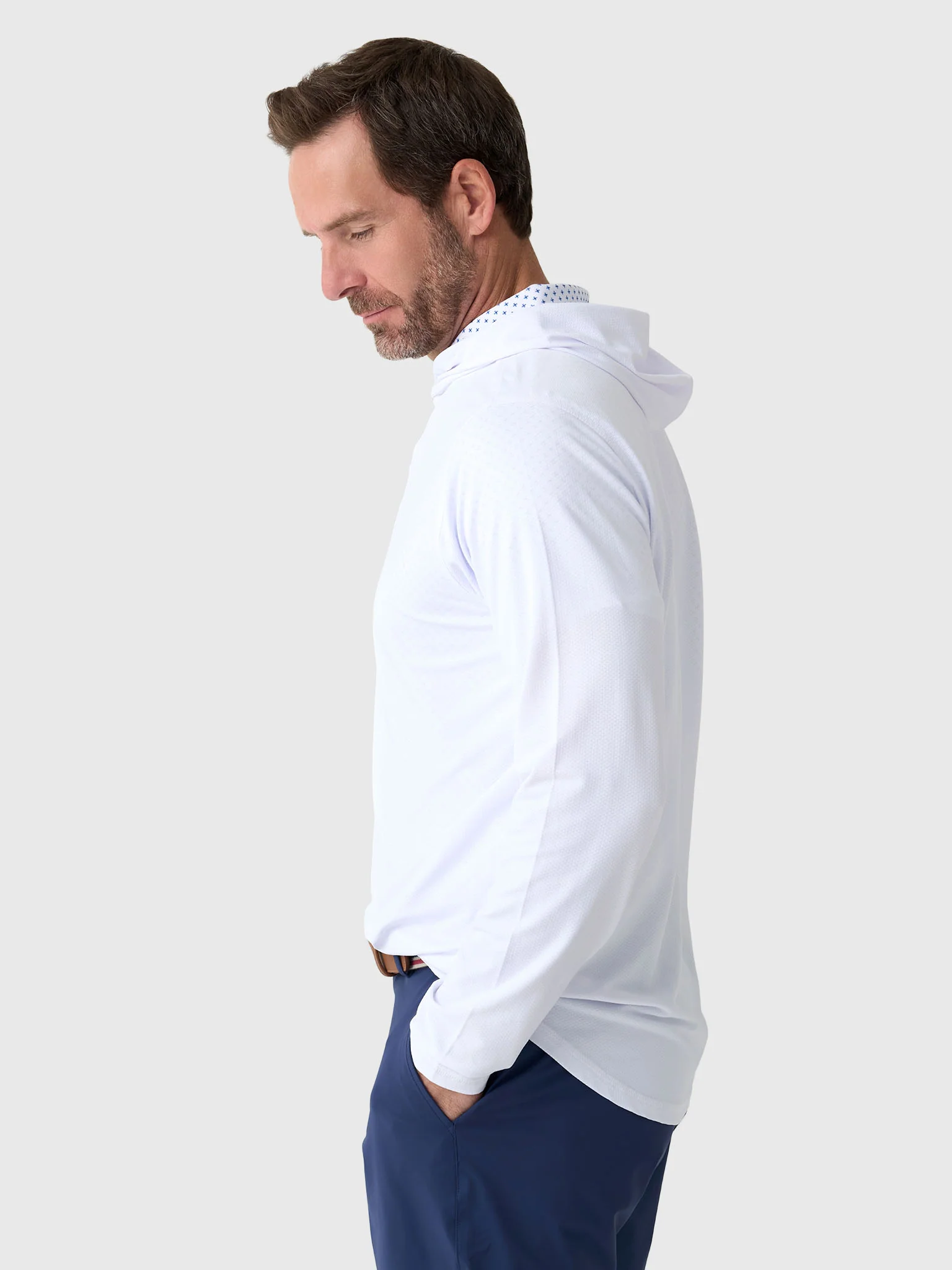 FEATURES:Attached Hood 4-Way Stretch Moisture-Wicking Cool Fabric™ Performance Fabrication Nylon/Spandex Classic Fit Model is wearing size Medium hoodie. Model's Measurements: Height: 6'0" | Waist: 32" | Inseam: 32" | Collar: 15" | Sleeve: 34.5" | Suit: 40R