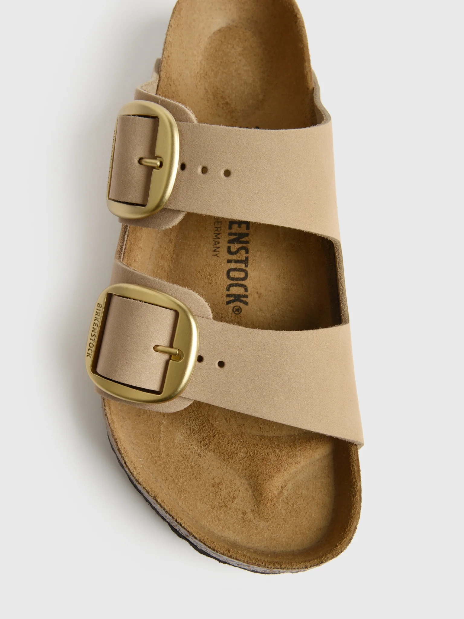 The iconic Arizona sandal gets a modern update with this stylish design. Featuring a double-buckle closure with oversized hardware and a smooth nubuck leather upper, it's a fresh take on a timeless classic.