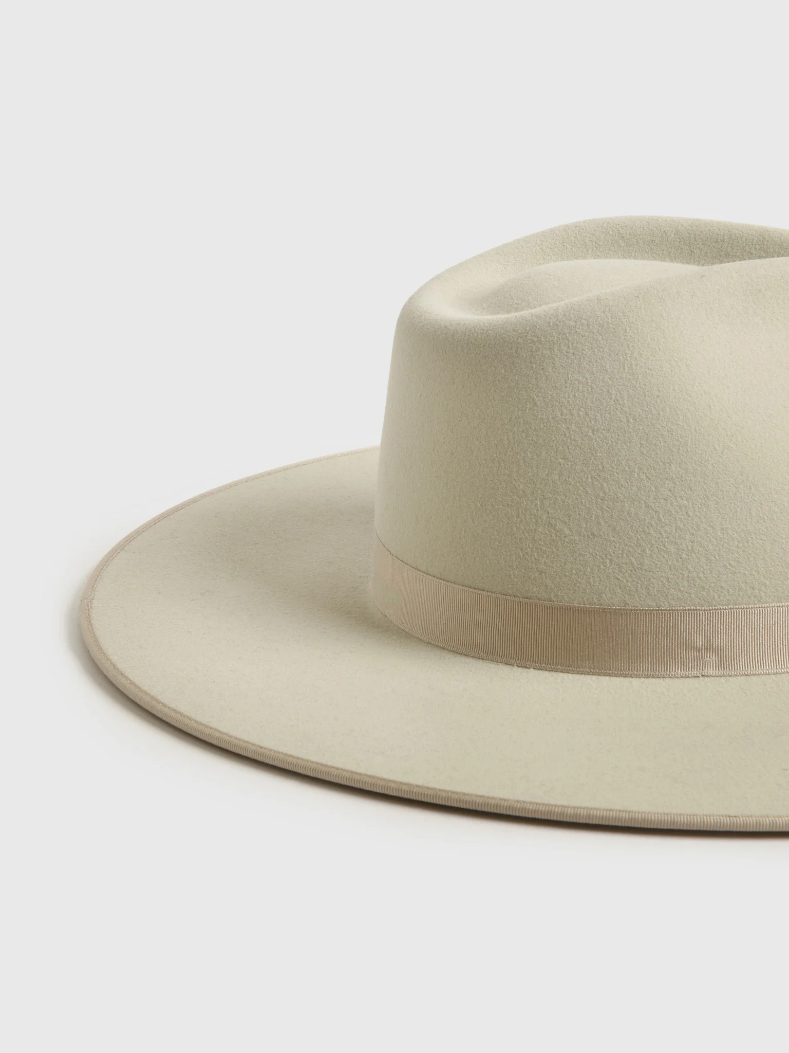 A western-style wool felt hat with a velvet band and a flat brim construction.