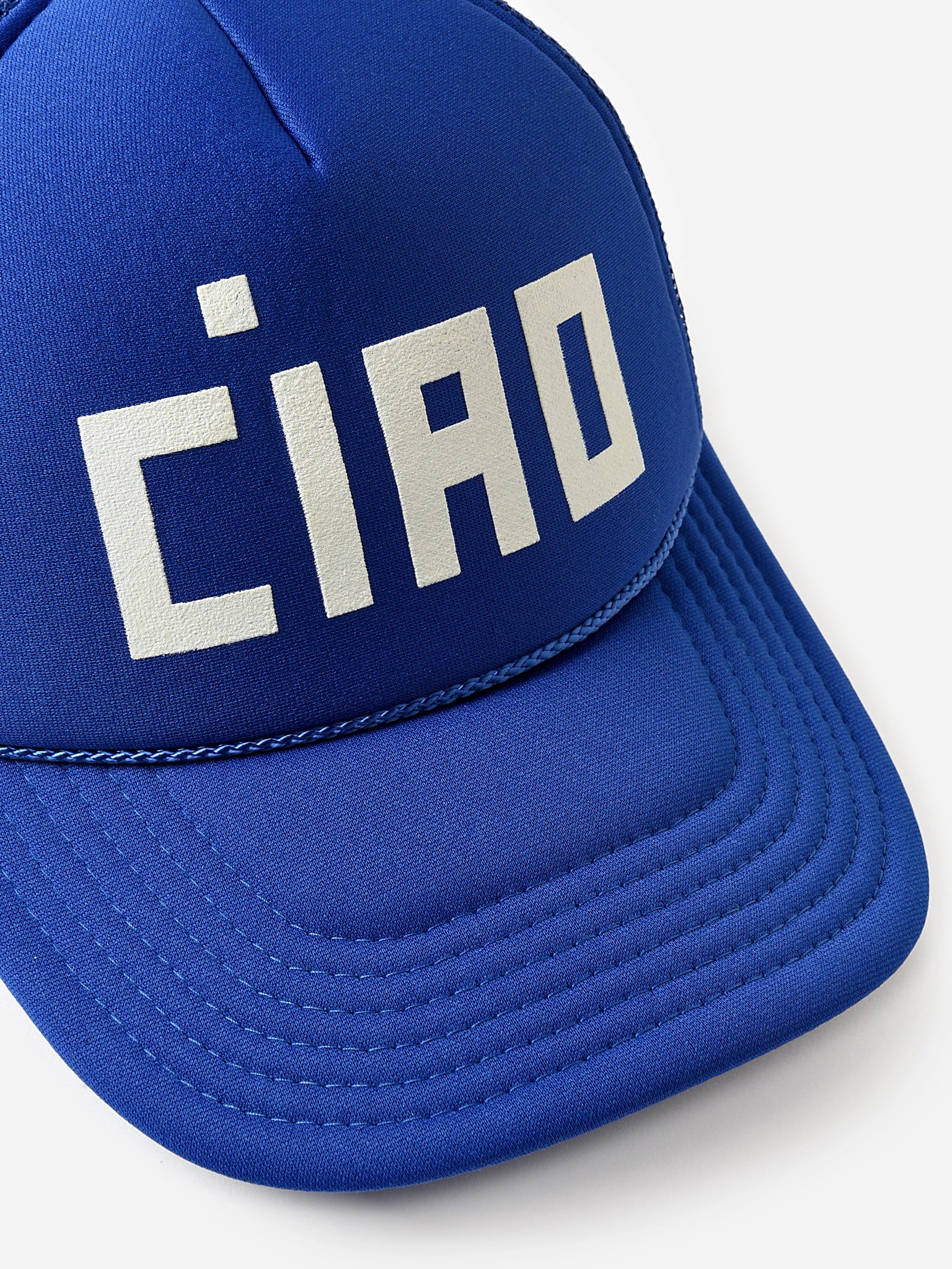 A classic trucker hat with a large block letter Ciao graphic.