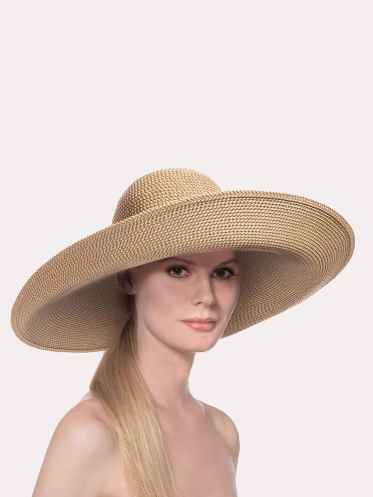FEATURES:Blocks 95% UVA/UVB rays Dramatic 6.5in. brim span provides maximum protection for face, ears, neck and shoulders Signature rivet logo is discreetly placed at the back of the crown Elasticized inner band fits most Lightweight and packable 50+ UPF