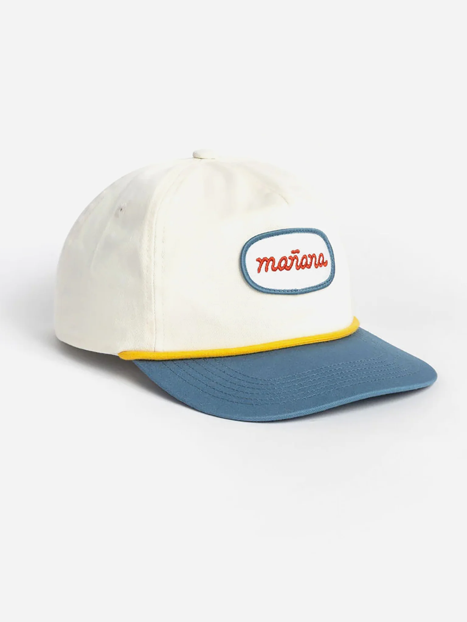 FEATURES:Pliable Bill Rope Detail Custom Mañana Patch Adjustable Back Eyelet Ventilation 100% Cotton One Size