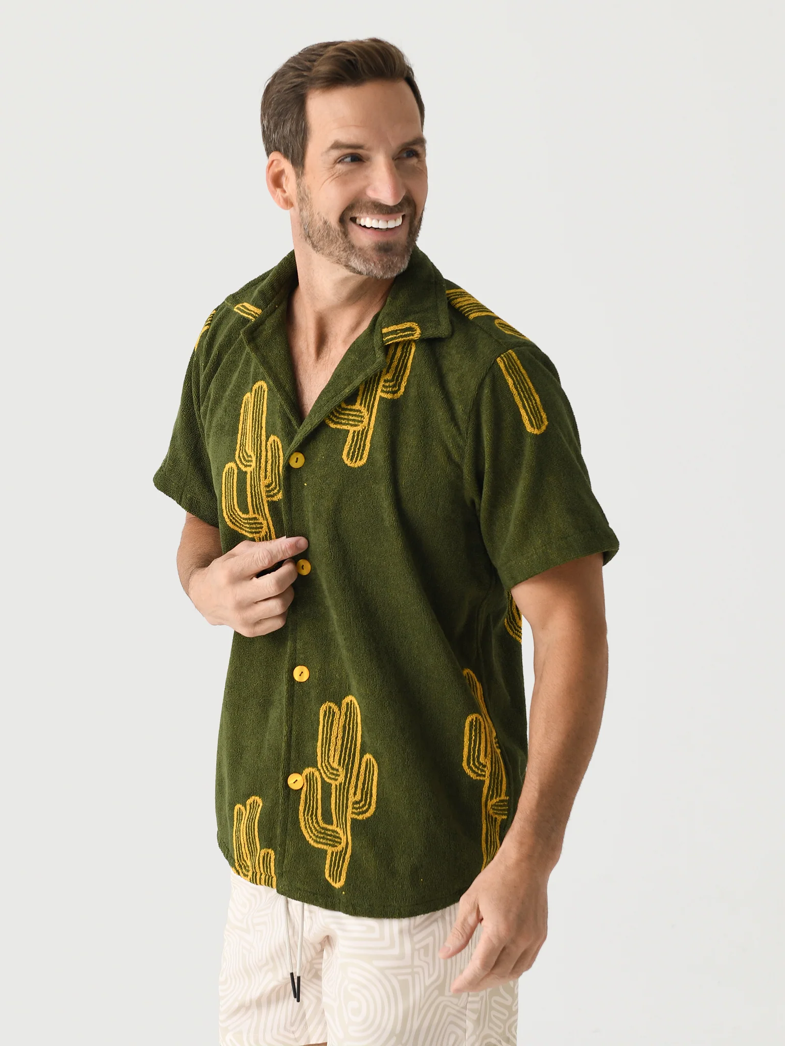 Breathable terry cotton shirt with a vibrant cacti print.