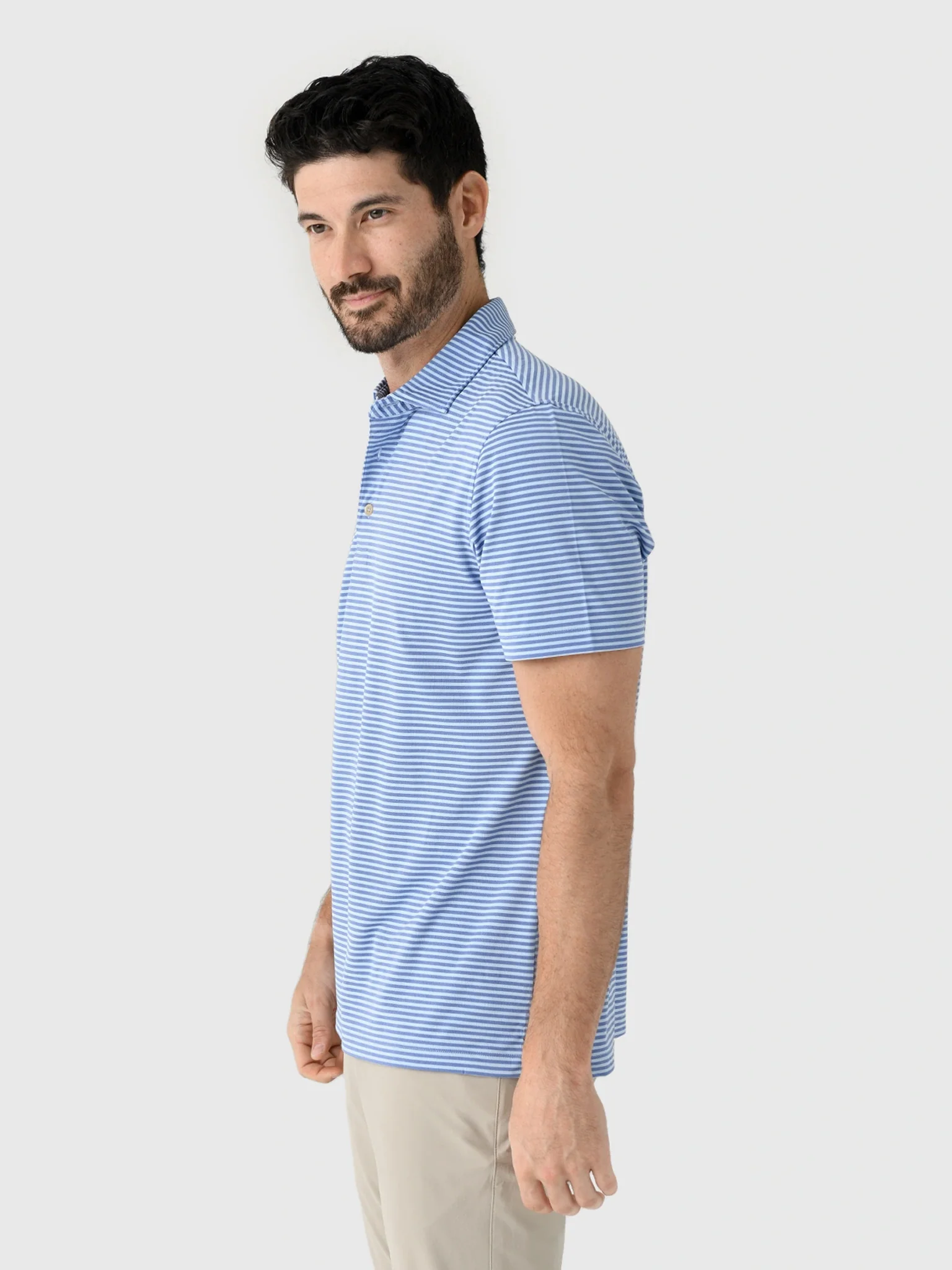 FEATURES:Self-Fabric Collar 3-Button Placket Vented Hem All-Over Stripe Print Cooling Technology Performance Fabrication 44% brrr° Polyester, 44% Polyester, 12% Elastane Classic Fit Model is wearing size Medium polo. Model's Measurements: Height: 6'1.5" | Waist: 32" | Inseam: 34" | Collar: 15.5" | Sleeve: 35" | Suit: 40L