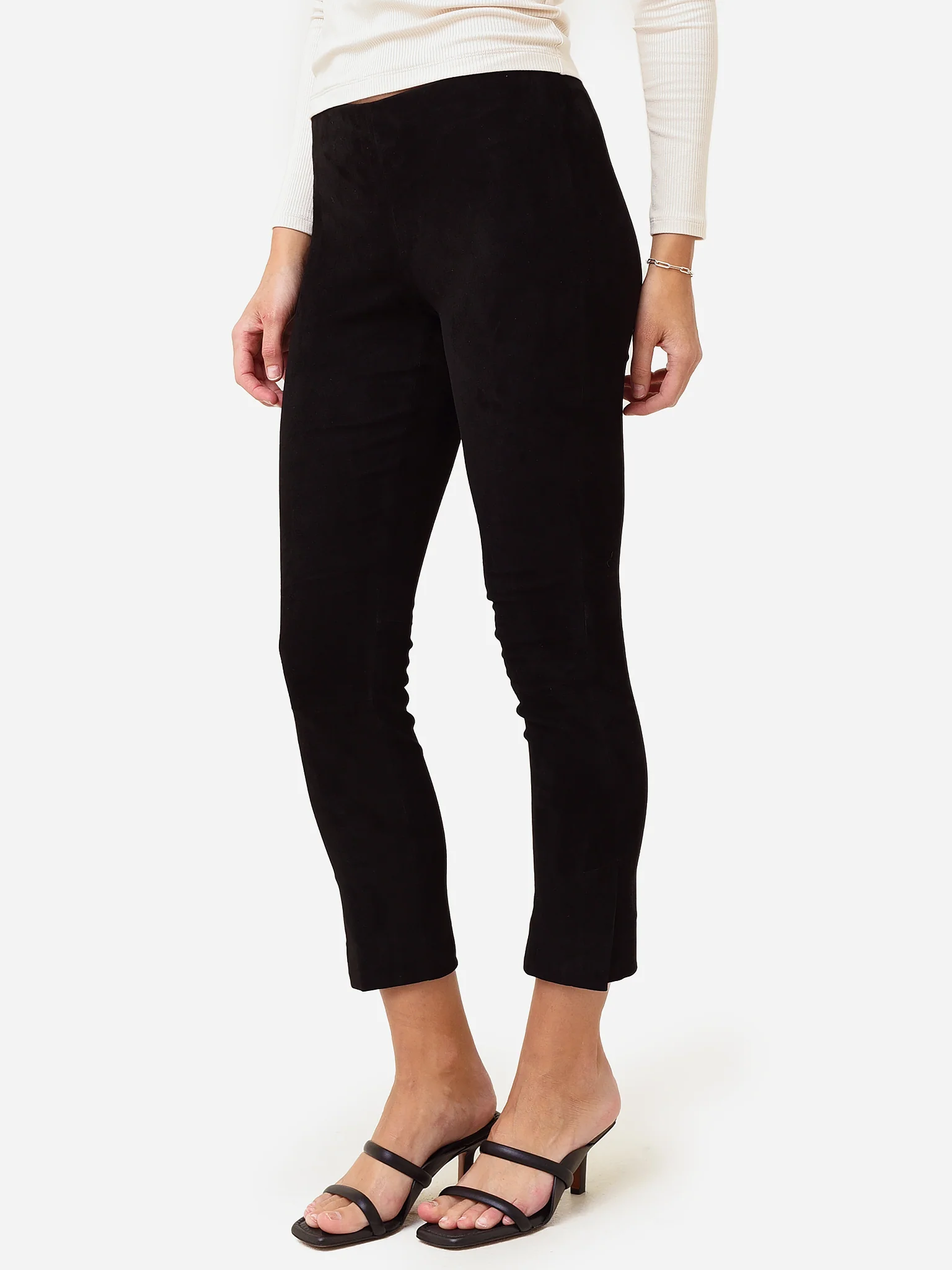 Buttery soft stretch suede legging pant with a cropped silhouette.