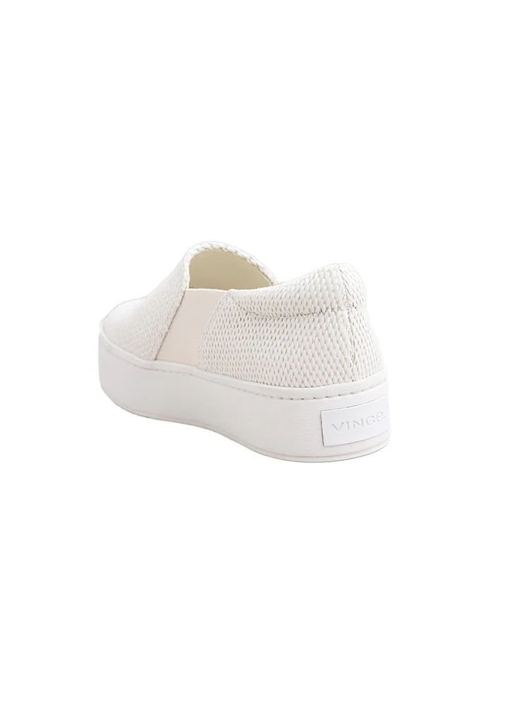 The Vince Warren Sneaker features a raffia outer for a cool resort look.