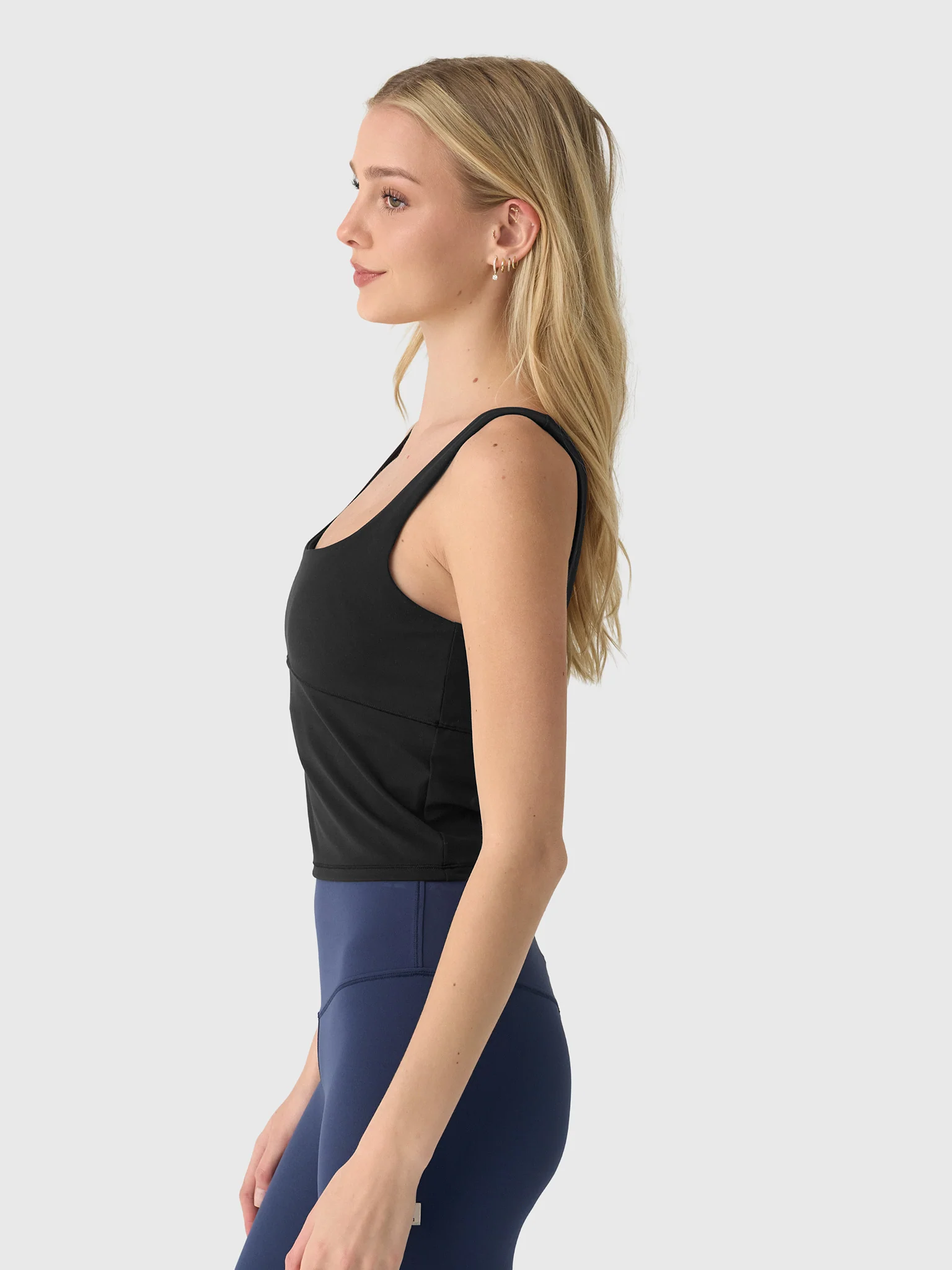 FEATURES:Square Neckline Fixed Straps Built-In Shelf Bra Cropped Silhouette 4-Way Stretch Moisture-Wicking Performance Fabrication 74% Polyamide, 26% Elastane Active Fit Model is wearing size Small tank top. Model's Measurements: Height: 5'9" | Bust: 32C | Waist: 24" | Hips: 37" | Dress Size: 2-4 (US)