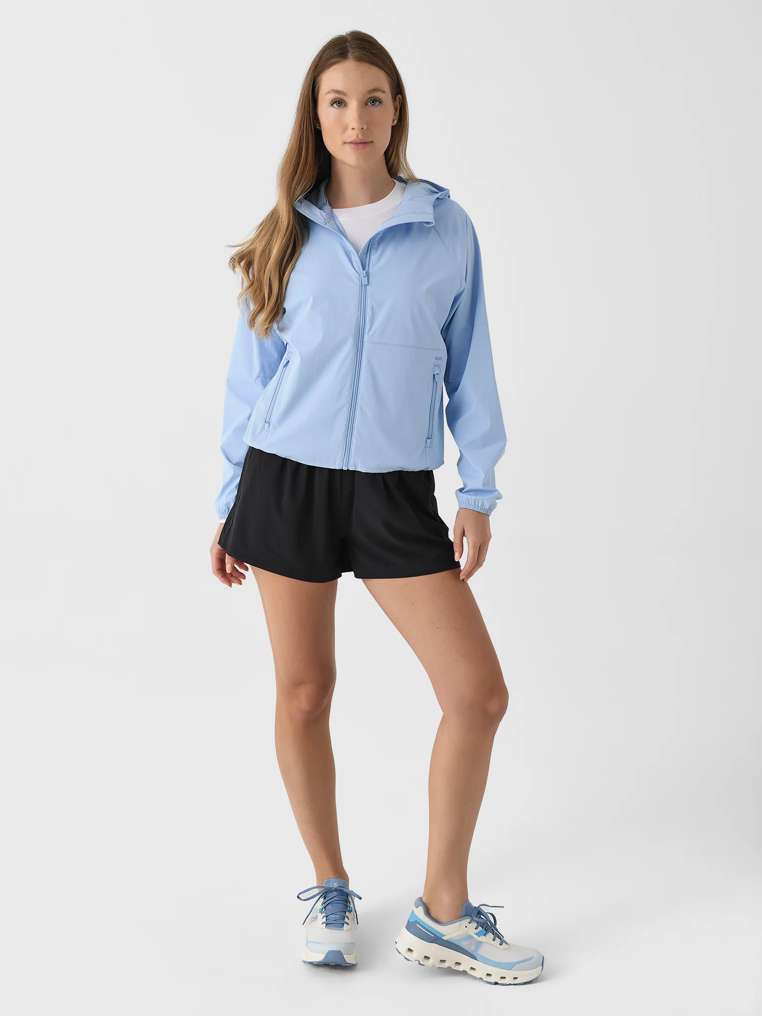 FEATURES:Attached Hood Raglan Sleeves Side Zip Pockets Full Zip Closure 4-Way Stretch Water-Resistant 100% Recycled Polyester Classic Fit Model is wearing size Small jacket. Black: Model's Measurements: Height: 5'10.5" | Bust: 32A | Waist: 25" | Hips: 37" | Dress Size: 0-2 (US) Surf: Model's Measurements: Height: 5'10" | Bust: 34B | Waist: 26.5" | Hips: 38.5" | Dress Size: 4 (US)
